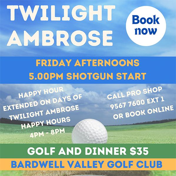 Mark your calendars! Bardwell Valley Golf Club is holding an ANZAC Day Ambrose Golf Event on Friday, 25th April 2025. Everyone is welcome—members, guests, visitors, and social players alike.
