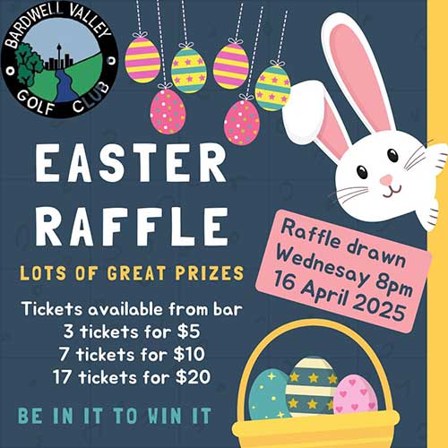 11/04/2025 / Comments Off on BARDWELL VALLEY GOLF CLUB EASTER RAFFLE – 800 PM, APRIL 16 JULY 2025